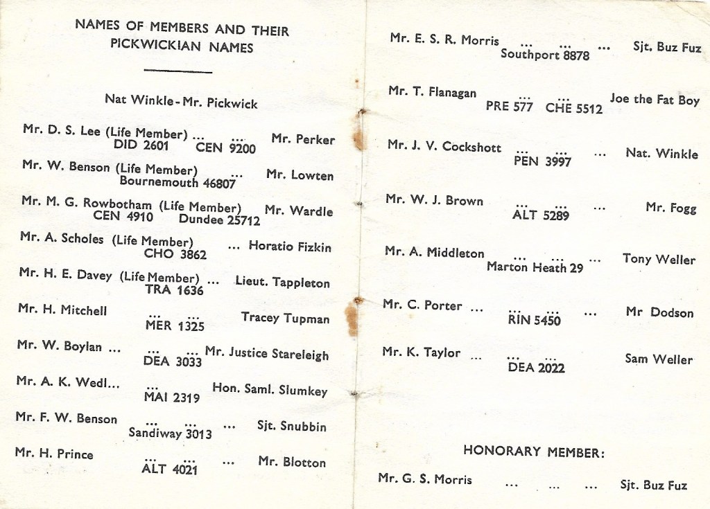 With much gratitude for the efforts (in trying circumstances) of the Minutes Writer, here are the official, verified and authentic minutes of the often-chaotic meetings of The Manchester Pickwick Club. In time-honoured fashion, only these minutes, and most definitely not the recollections of individual members, can be relied upon for an accurate record of what transpired at each gathering.